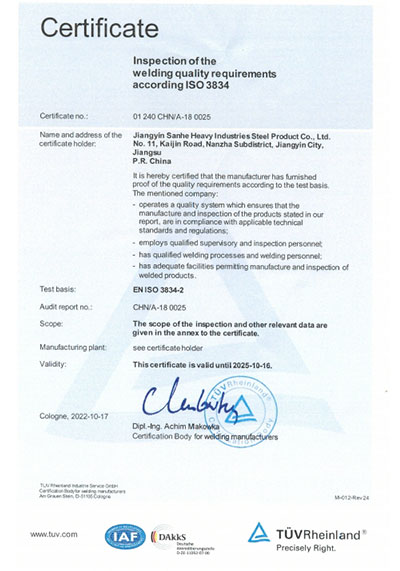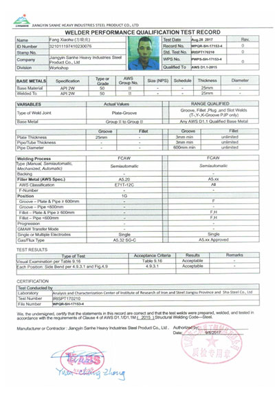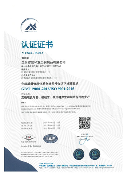 江陰市三和重工鋼制品有限公司成立于2012年3月,總投資1.2億,坐落于江蘇省江陰市南閘錦南工業(yè)區(qū),占地4萬平方米,廠房面積3萬平方米。專業(yè)從事大口徑厚壁直縫埋弧焊接(LSAW)鋼管、方管、錐管,RBE卷制埋弧焊接鋼管的研發(fā)、生產(chǎn)和銷售。公司憑借著嚴(yán)謹(jǐn)?shù)漠a(chǎn)品質(zhì)量管理,先后通過了ISO三體系認(rèn)證,RS、BV等船社級工廠認(rèn)證,同時(shí)取得了CE CPR,API2B等歐美地區(qū)資質(zhì)認(rèn)證。公司擁有一條完整的,可以生產(chǎn)單支長度達(dá)到12米的JCO直縫埋弧焊鋼管生產(chǎn)線(品牌:美國林肯) ,3套卷管生產(chǎn)線以及異型管生產(chǎn)線。公司主要產(chǎn)品有各種大小厚壁直縫埋弧焊管、卷管、方管、矩形管、錐管、多邊形管等,主要以厚壁管為主。可按國家標(biāo)準(zhǔn)GB9711 、GB50250 系列 ,國際標(biāo)準(zhǔn)API? SPEC 2B及EN10210、EN10219、EN10208、 A671、A672等生產(chǎn)各種規(guī)格鋼管,年綜合產(chǎn)能達(dá)20萬噸,產(chǎn)品廣泛應(yīng)用于海上 石油鉆井平臺、輸煤漿、輸水、特高壓輸電鐵塔電,石油化工、高層建筑鋼結(jié)構(gòu)建筑工程、大型海洋碼頭樁管等領(lǐng)域。公司擁有一支由我國制管行業(yè)領(lǐng)先的技術(shù)團(tuán)隊(duì),并與國內(nèi)制管技術(shù)與工藝方面的專家、科研院所建立了密切的合作關(guān)系, 研發(fā)能力處于國內(nèi)先進(jìn)水平,專門生產(chǎn)厚壁鋼管。為擴(kuò)大產(chǎn)能,滿足對客戶長直管的需求,2023年11月30日,在靖江:江陰-靖江工業(yè)園區(qū)成立了三和重工的全資子公司:江陰市永祥鋼制品有限公司,可以對接環(huán)焊總長超過三十米的焊接鋼管及各類型鋼結(jié)構(gòu)產(chǎn)品。江陰市三和重工鋼制品有限公司扎根于江陰,放眼于全球,通過持續(xù)的產(chǎn)業(yè)規(guī)模擴(kuò)張和技術(shù)提升,立志成為大直縫埋弧焊管行業(yè)具有國際影響力的企業(yè)。
